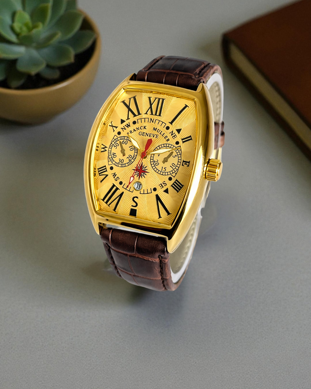 2 reviews for Franck Muller Casablanca Brown Strap Golden Bezel Golden Dial
